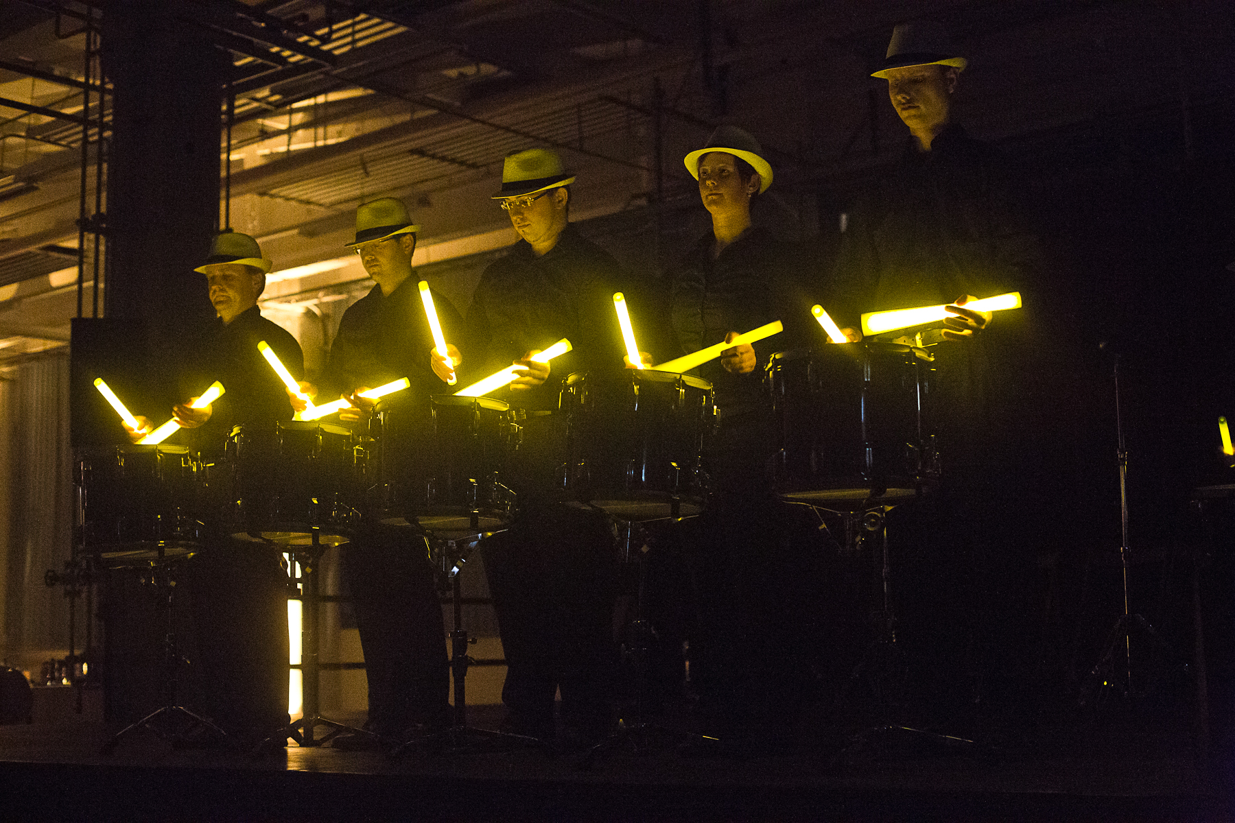 Auf dies Idee des Outfits, samt weißer Handschuhe, kamen wir bei den Überlegungen, wie die verschiedenen Bewegungen noch besser zur Geltung kommen könnten. Als schließlich der Satz fiel: “…denn schließlich seien wir ja so etwas wie trommelnde Pantomime-Darsteller…” war die assoziative Brücke schnell geschlagen. Das war die Geburtsstunde der “WHITE HAT DRUMMERS”.